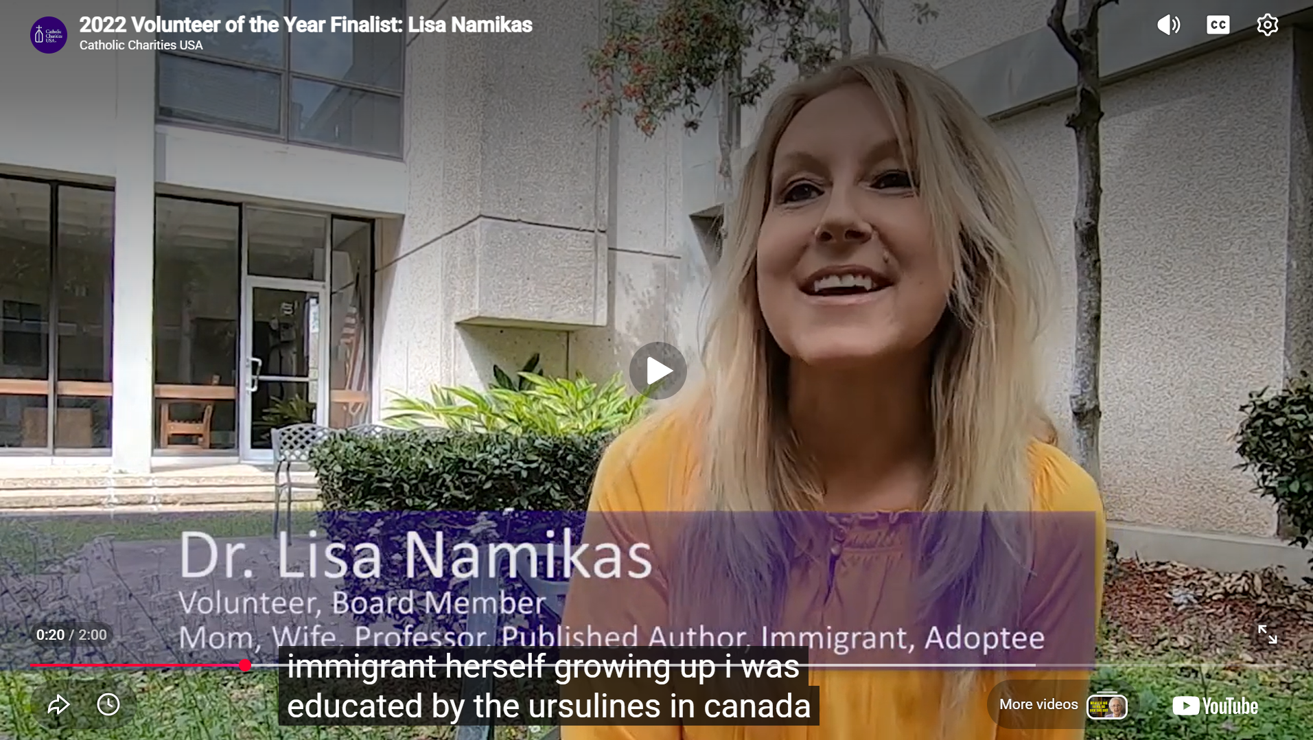 Education and human rights exist within the context of a larger community. Having experienced adoption and the upheaval of relocation some 10 times before adulthood, I learned the importance of finding a sense of belonging within new communities. Today I find kinship among those who are in search of their own place of acceptance and I want to welcome each individual. As a dedicated volunteer with Catholic Charities and in 2024 Advisory Board Chairperson, I have the privilege of supporting resettlement of refugees and immigrants, developing educational programs, aiding with disaster relief, and participating in the Faith-Full food program, among many other endeavors.